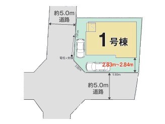| 駐車場 | 2台 | 道路の幅員 | 1号棟:西5m 南5m |