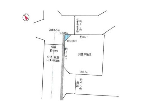 | 駐車場 | 1台 | 道路の幅員 | :北西4m 北東4m |