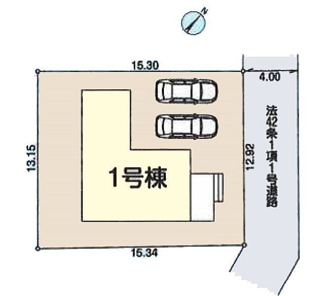 | 駐車場 | 2台 | 道路の幅員 | 1号棟:北東4m |