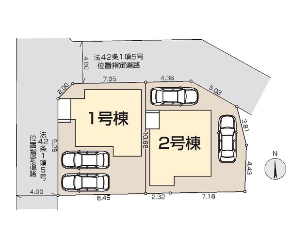 | 駐車場 | 2台 | 道路の幅員 | 1号棟:北4m 西2.7m |