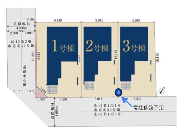 | 駐車場 | 1台 | 道路の幅員 | 2号棟:南東4m /3号棟:南東4m /1号棟:南西4m 南東4m |