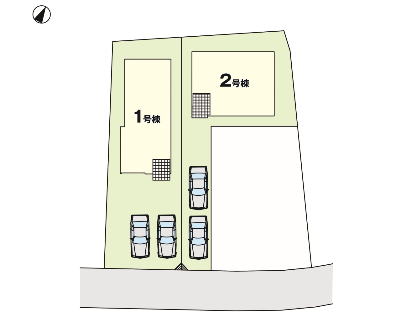| 駐車場 | 2台 | 道路の幅員 | 1号棟:南4m |