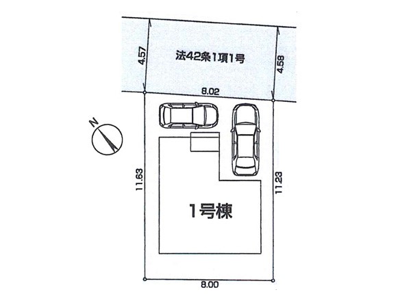 | 駐車場 | 2台 | 道路の幅員 | 1号棟:北東4.5m |