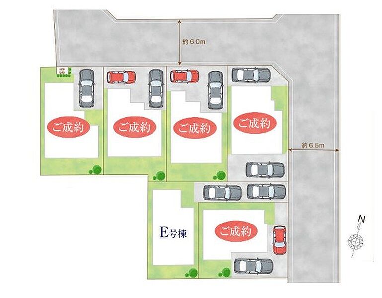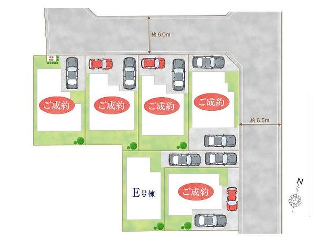 | 駐車場 | 2台 | 道路の幅員 | E号棟:東6.5m |