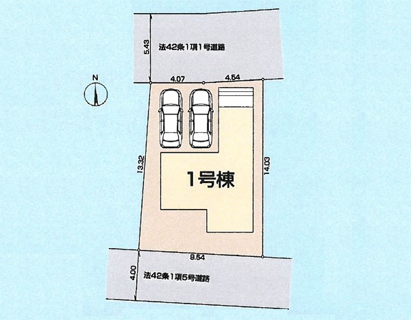 | 駐車場 | 2台 | 道路の幅員 | 1号棟:北5.4m 南4m |