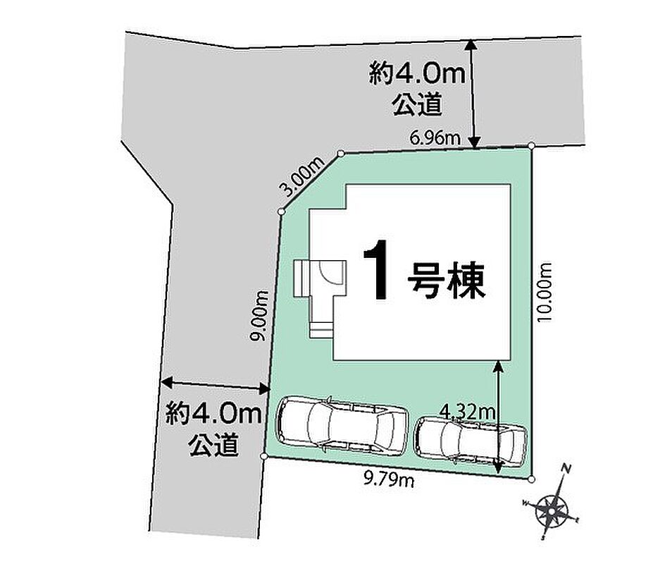 | 駐車場 | 2台 | 道路の幅員 | :北4m 西4m |