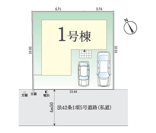 | 建物面積 | 83.72m2 | 土地面積 | 104.83m2<私道負担面積69.27m2 私道負担割合310/1000> |
