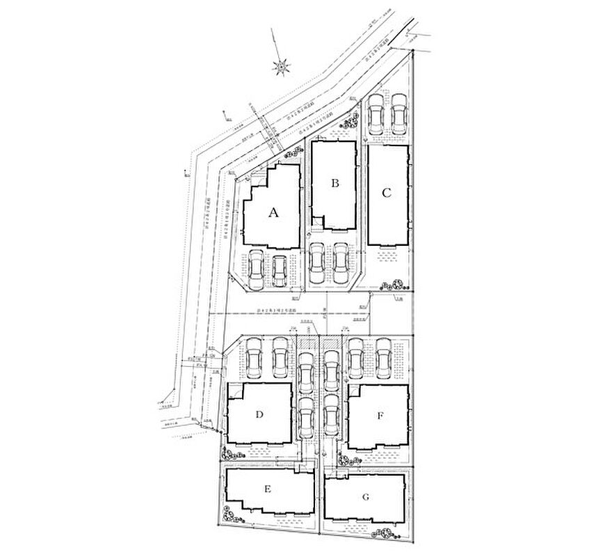 | 駐車場 | 2台 | 道路の幅員 | E号棟:北5m /F号棟:北5m /D号棟:北5m 西4.6m /A号棟:北4.6m 南5m 西4.6m /C号棟:北4.6m 南5m /B号棟:北4.6m 南5m …他 |