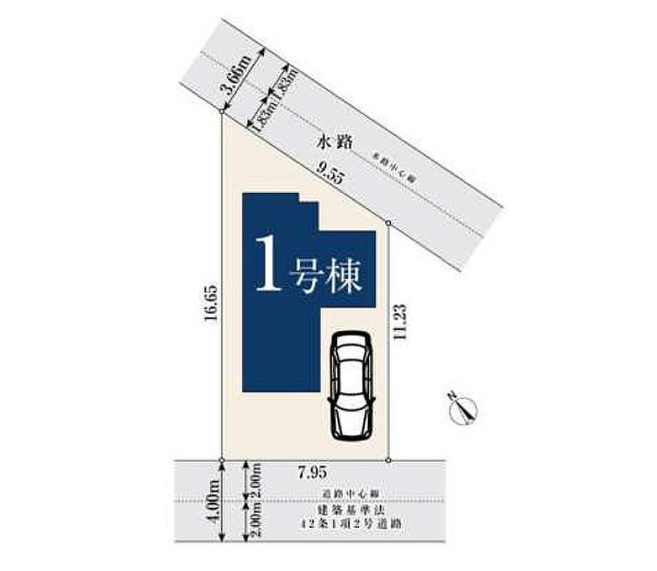 | 駐車場 | 1台 | 道路の幅員 | 1号棟:南4m |