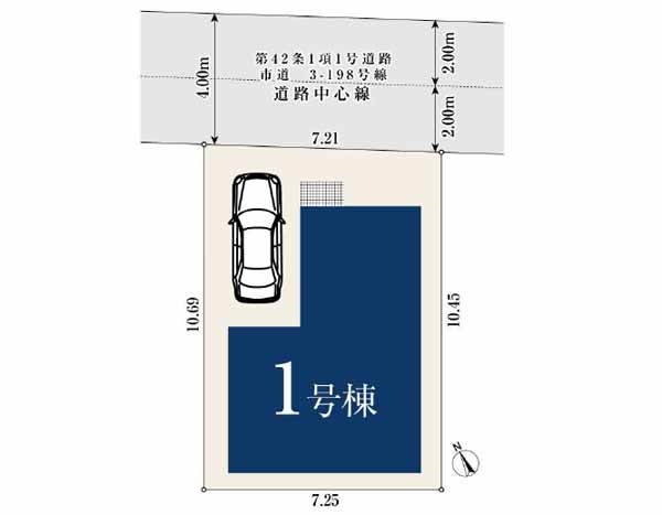 | 駐車場 | 1台 | 道路の幅員 | 1号棟:北東4m |