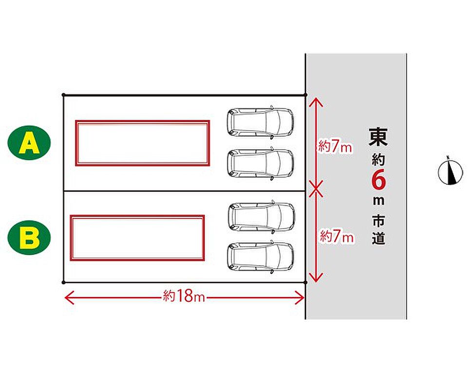 | 駐車場 | 2台 | 道路の幅員 | A号棟:東6m /B号棟:東6m |
