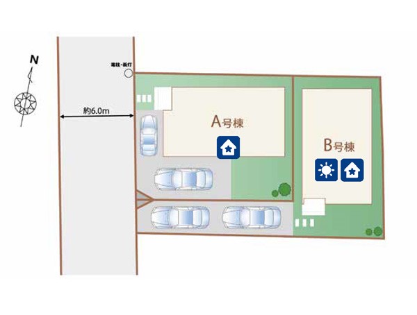| 駐車場 | 2台 | 道路の幅員 | B号棟:西6m /A号棟:西6m |
