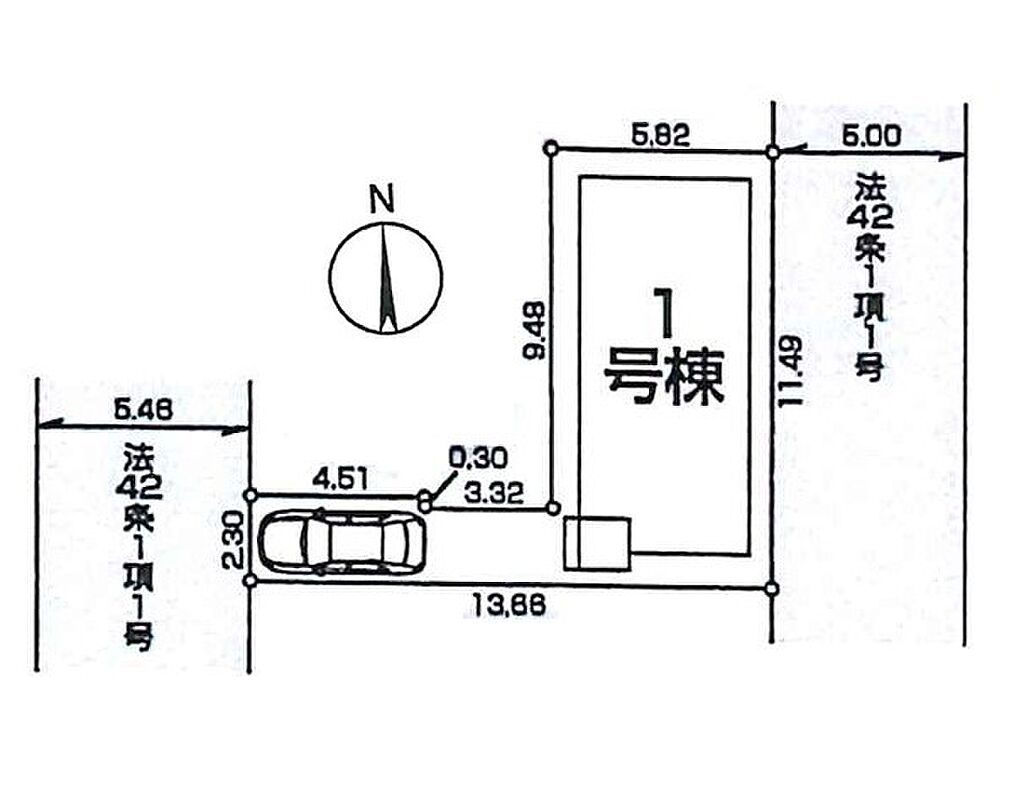 | 駐車場 | 1台 | 道路の幅員 | 1号棟:西5.4m 東5m |