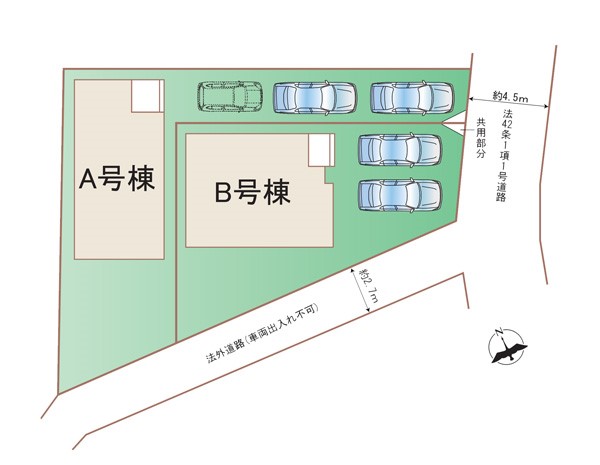 | 駐車場 | 2台 | 道路の幅員 | B号棟:東4.5m |