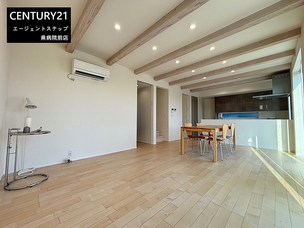 ・開放感と温もりが溶け合う「ホワイトオイル仕上げ」の見出し梁