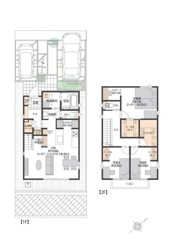 主寝室に約1.1帖のワークスペース有り外壁は、セルフクリーニング機能・継ぎ目が目立ちにくいシーリングレス仕様です駐車2台可(車種による)