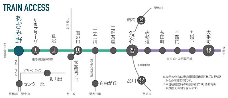 【売主】『あざみの』駅生活圏♪日当たり良好♪週末内覧可!収納豊富な4LDK/ 都心や横浜方面にアクセスが良い「あざみ野」駅生活圏。「渋谷」駅まで23分、「横浜」駅まで27分のアクセスです。