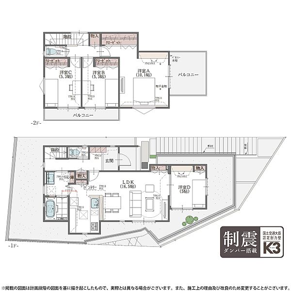 設備も充実。ZEH水準の断熱・省エネ性能住宅。玄関ドア電子錠、蛇口一体型浄水器、ガラストップコンロetc/ 建物の揺れを吸収しダメージを抑制する「K3制震ダンパー」搭載/ 施工例をお近くにご用意。