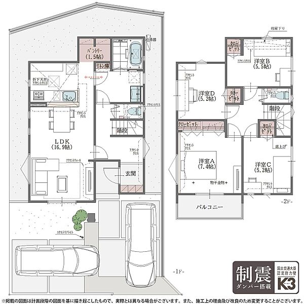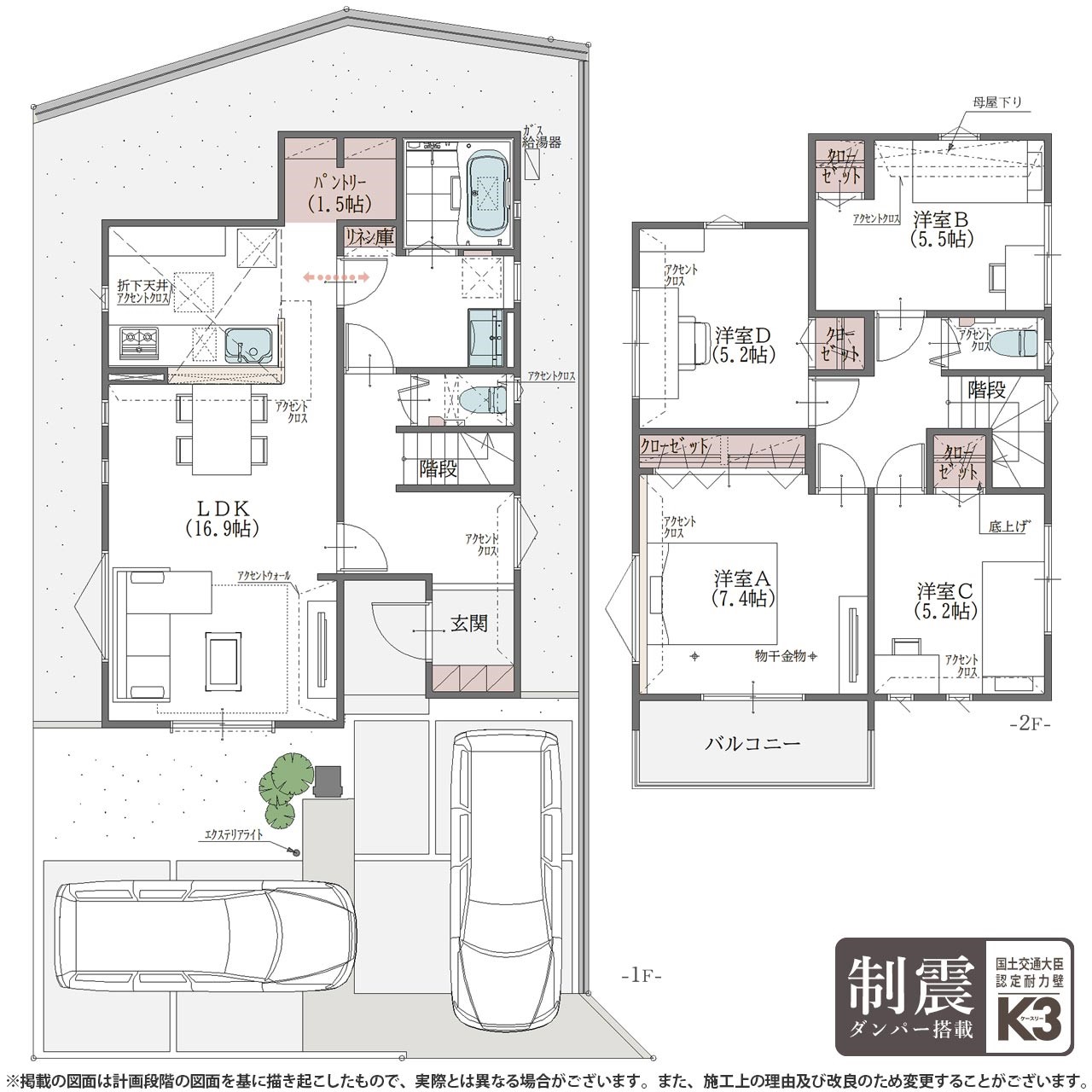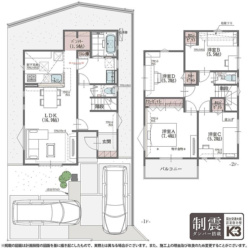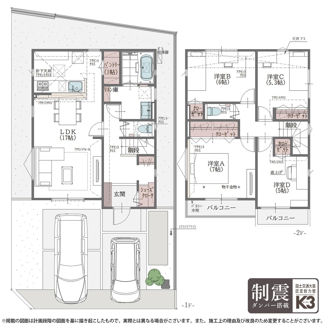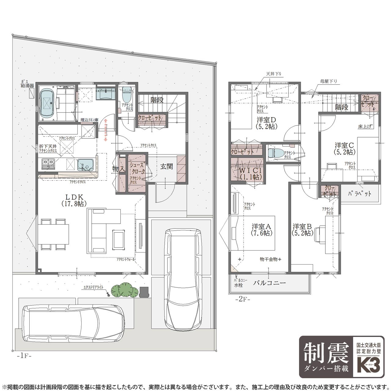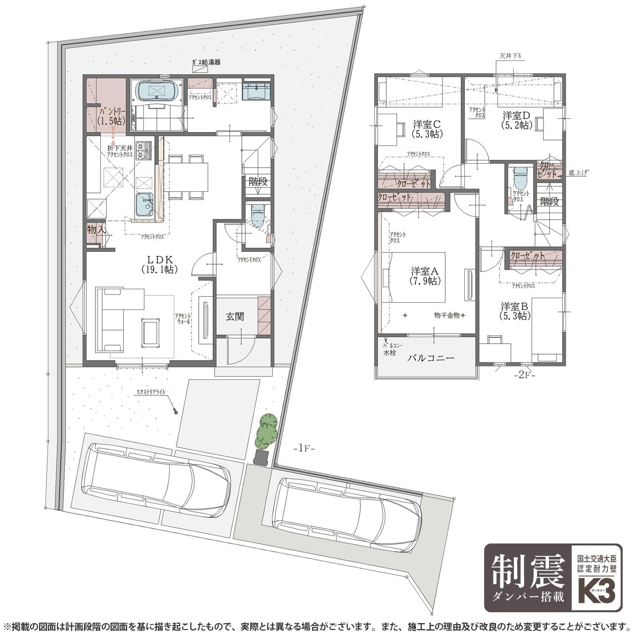 - ※完成予想図やCG合成画像は、門塀・植栽・庭・外観等、実際とは多少異なる場合があります。
