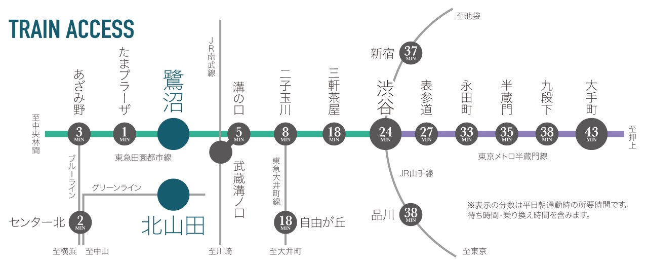 東急田園都市線「鷺沼」駅 徒歩38分 横浜市営地下鉄グリーンライン「北山田」駅 徒歩23分 東急田園都市線「鷺沼」駅 東急バス乗車15分、野川台公園前停留所バス停下車 徒歩5分 |