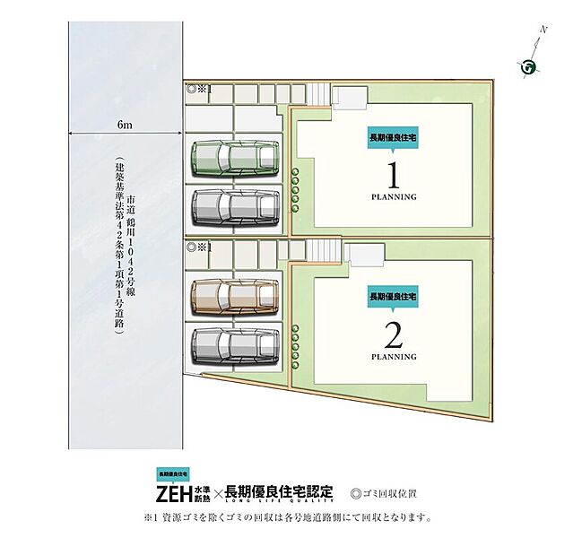 ◆幅員6mの南西道路に面しており、陽当たり・採光・通風良好です。カースペースも並列2台分ございます。◆間取りは4LDK。1階に広いLDK+水回り、2階は主寝室+3部屋をプランニング。