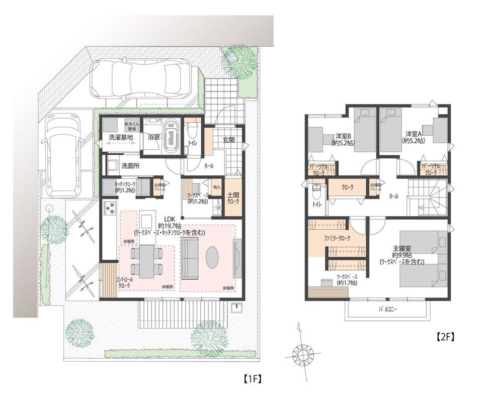 ・土間クローク、ファミリークローク、パーソナルクロークなど収納充実・リビングと主寝室にはワークスペースがあり、プライベートな時間も楽しめます・セパレートキッチンはご家族と一緒に調理を楽しめます