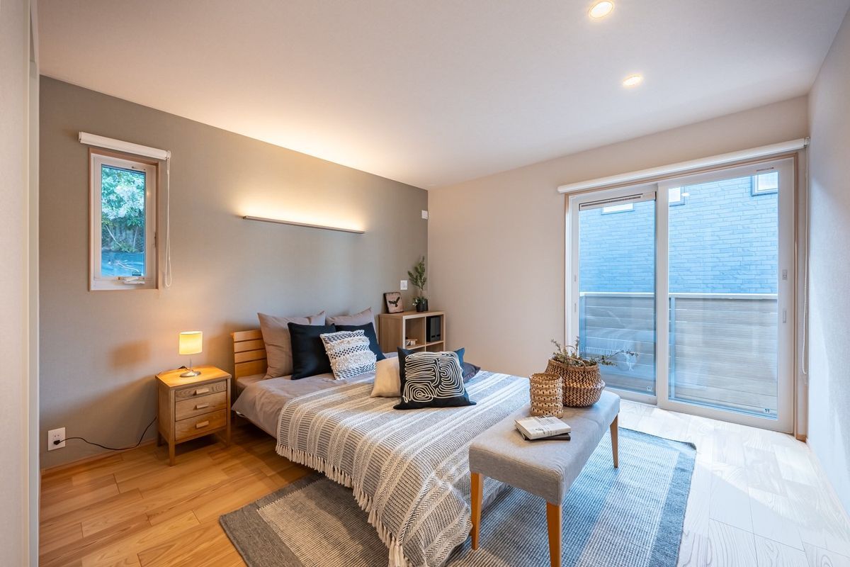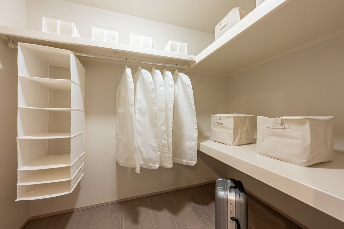 約19.4帖のリビングには床暖房があり、足元からじんわりと温めてくれて、冬場でも快適です。2階約8.1帖の主寝室には、パーソナルクロークがございます。ご家族の荷物や衣類を一括管理できるので便利です。