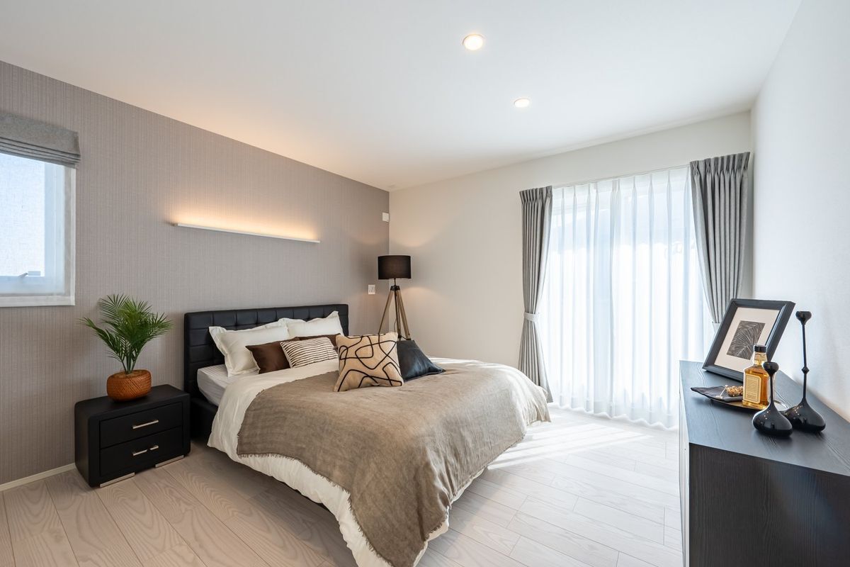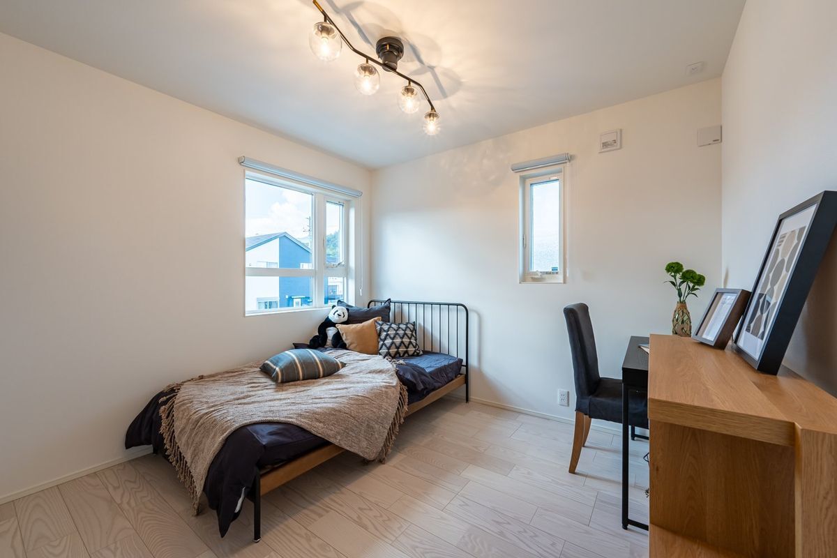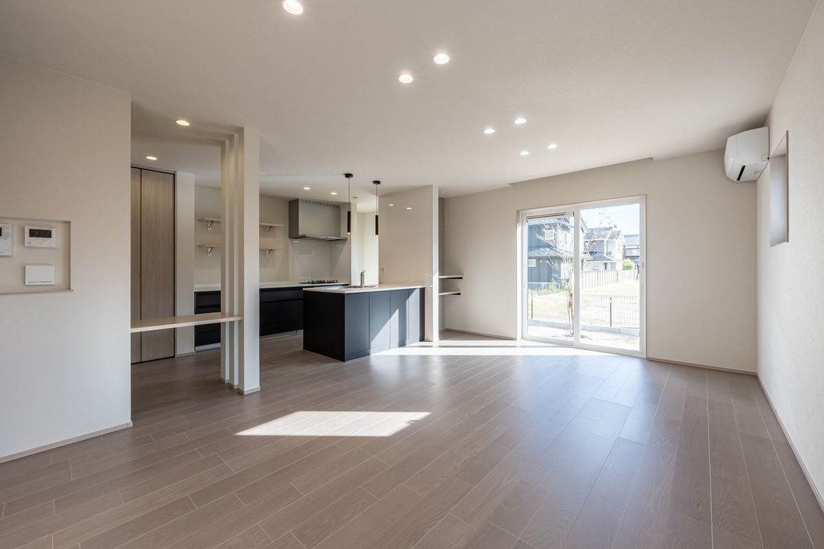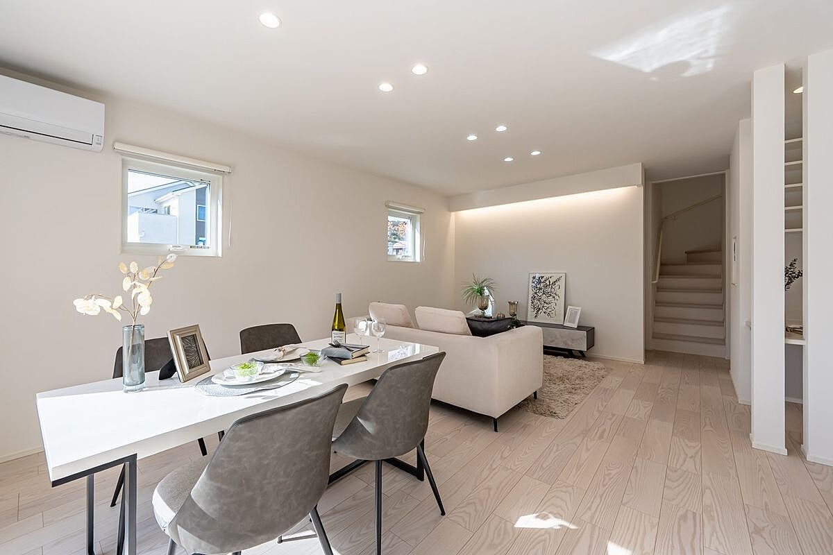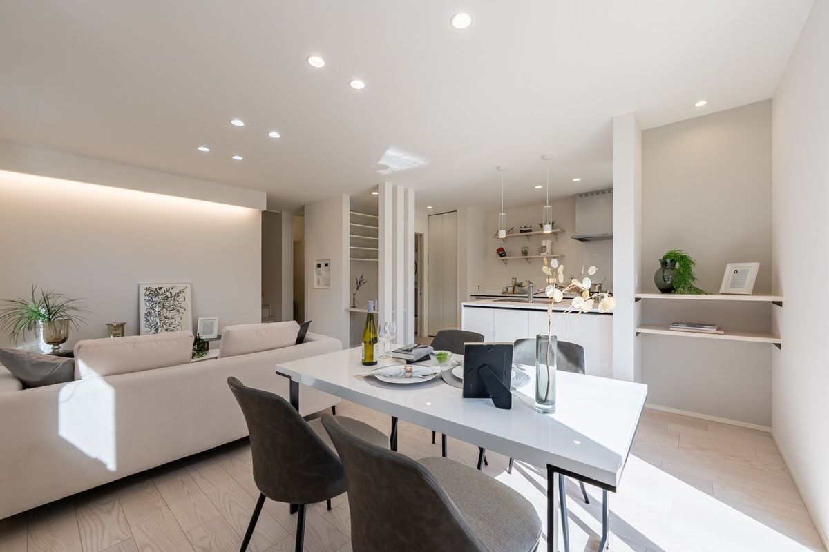白をベースとしたLDKは清潔感があり、室内を明るい印象にしてくれます。LDKと主寝室にはリモートワークやお子様の学習スペースなど、様々な用途に活用いただけるワークスペースがあります。