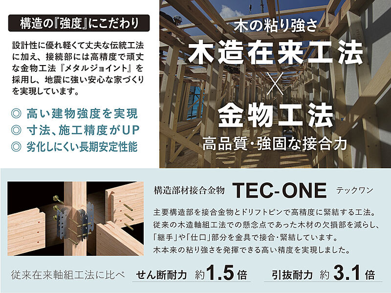 木の粘り強さ・軽さを十分に活かす在来工法...