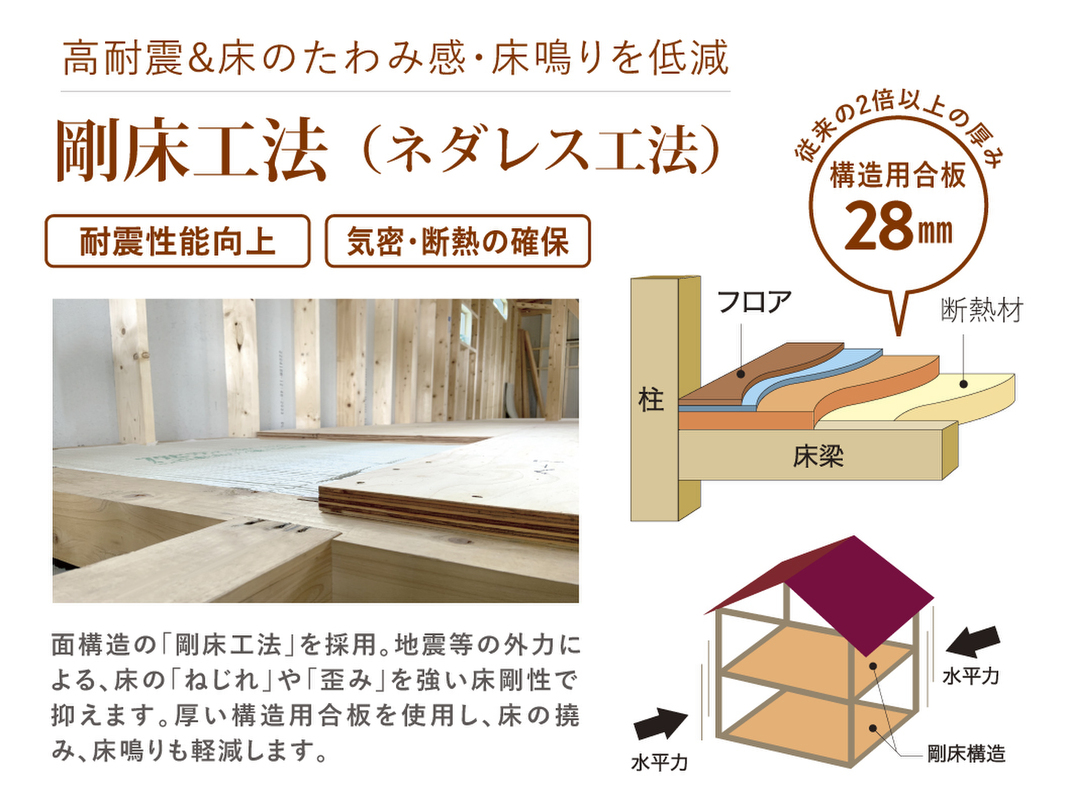 【厚くて頑丈な床面】 剛床(ネダレス)工...