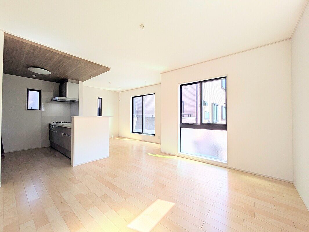 ●リビングは南面に大きな窓を2ヶ配置、その他も含めて4面からの採光で明るい空間!●固定階段で上がる大型ロフト、季節物家電やレジャー用品などもどんどん仕舞えます。●カースペース大型車2台分可能。