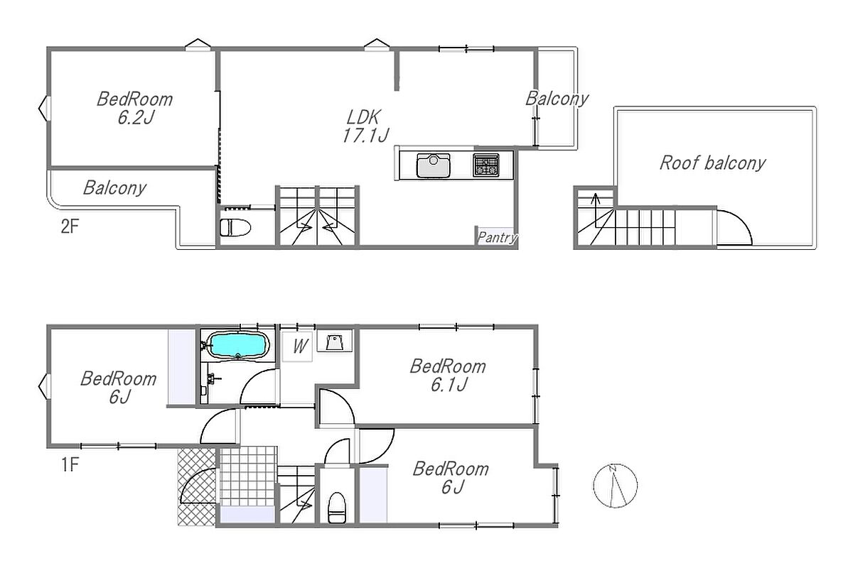 【ゆとりある間取りプラン!】小田急線「喜多見」駅徒歩10分の好立地!周辺には自然も多く子育てにも適した住環境!屋上テラス付き大型間取りプラン!全居室6帖以上のゆとりある間取り!