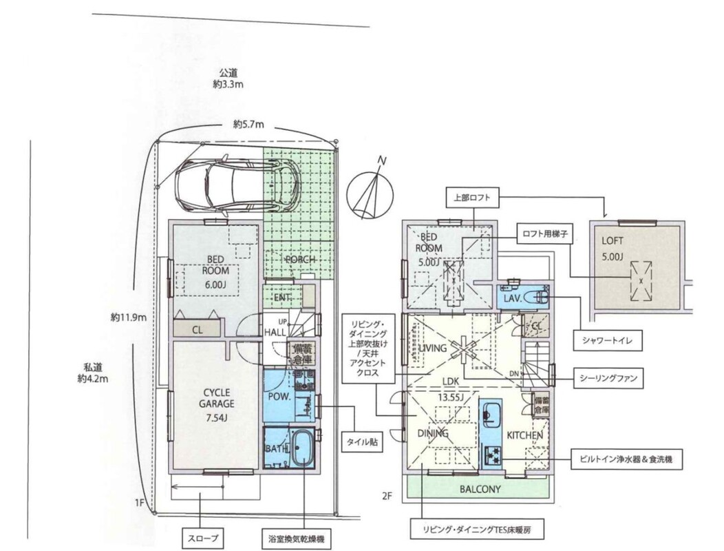 | 駐車場 | - | 道路の幅員 | 北側約3.3m公道、西側約4.2m私道 |