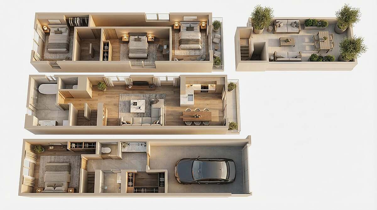 屋上テラス・カースペース付き4LDKの大型間取りプラン!