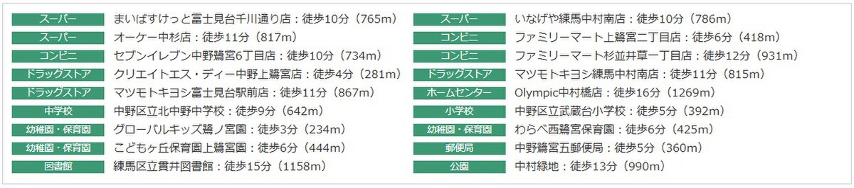 西武池袋線「富士見台」駅 徒歩11分 西武新宿線「鷺ノ宮」駅 徒歩13分 |