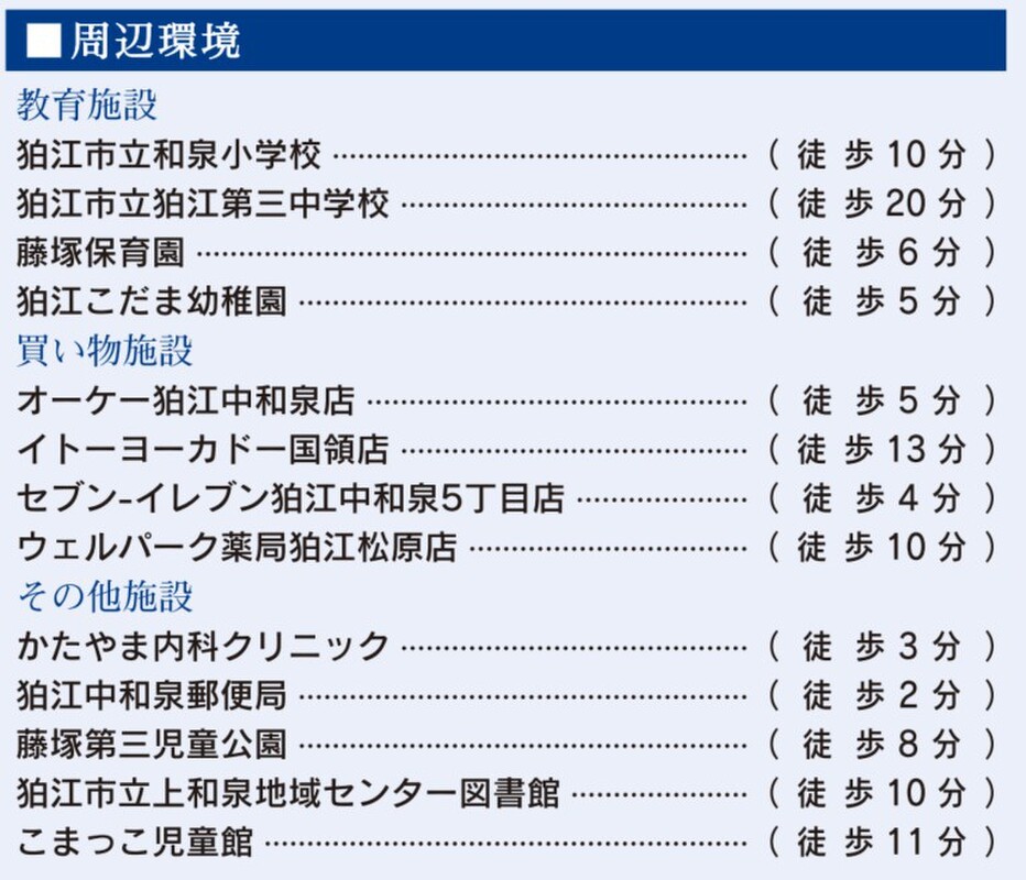 - 小田急小田原線「狛江」駅 徒歩17分京王線「国領」駅 徒歩21分小田急小田原線「和泉多摩川」駅 徒歩24分