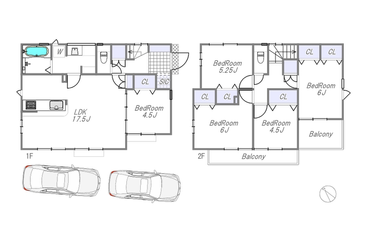 【仲介手数料「0円」対象物件!】ゆとりある間取りプラン!カースペース2台分!5LDKのゆとりある間取りプラン!全居室収納付き!廊下収納やリビング収納など収納スペースが豊富な新築分譲住宅!