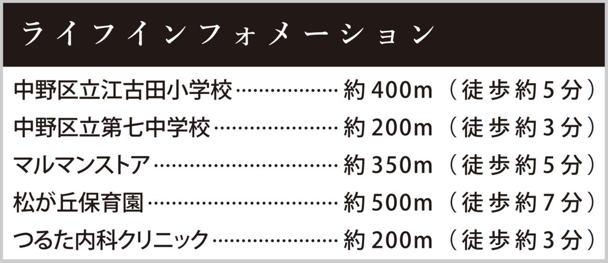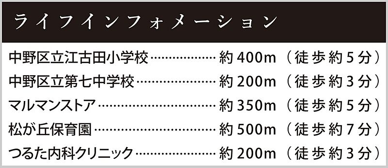 都営大江戸線「新江古田」駅 徒歩11分 西武新宿線「沼袋」駅 徒歩13分 西武新宿線「新井薬師前」駅 徒歩18分 |