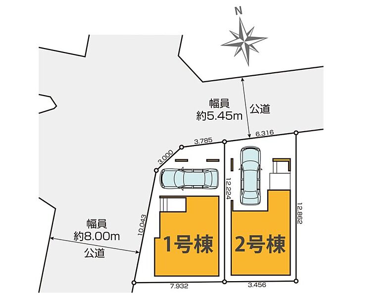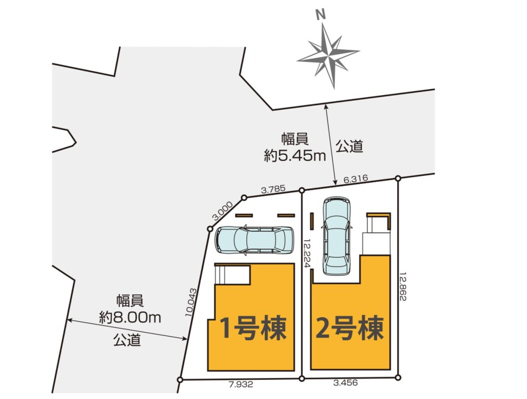 | 駐車場 | - | 道路の幅員 | 北側約5.45m公道、西側約8m公道 |