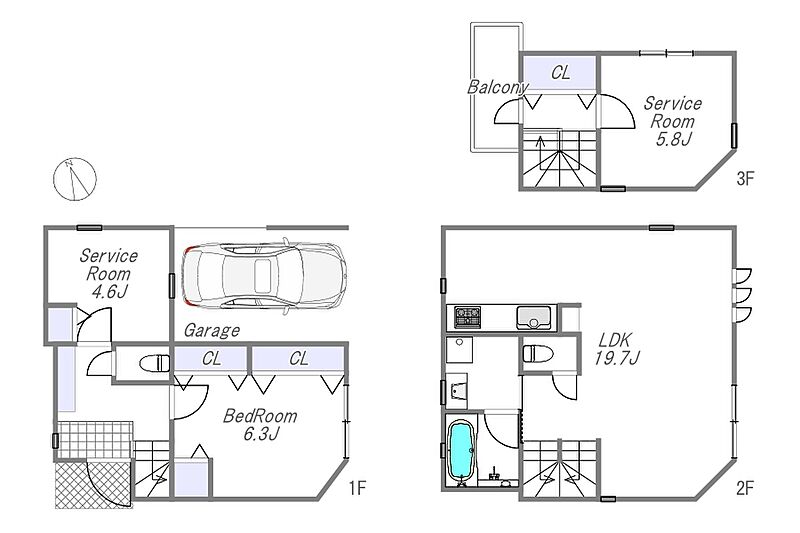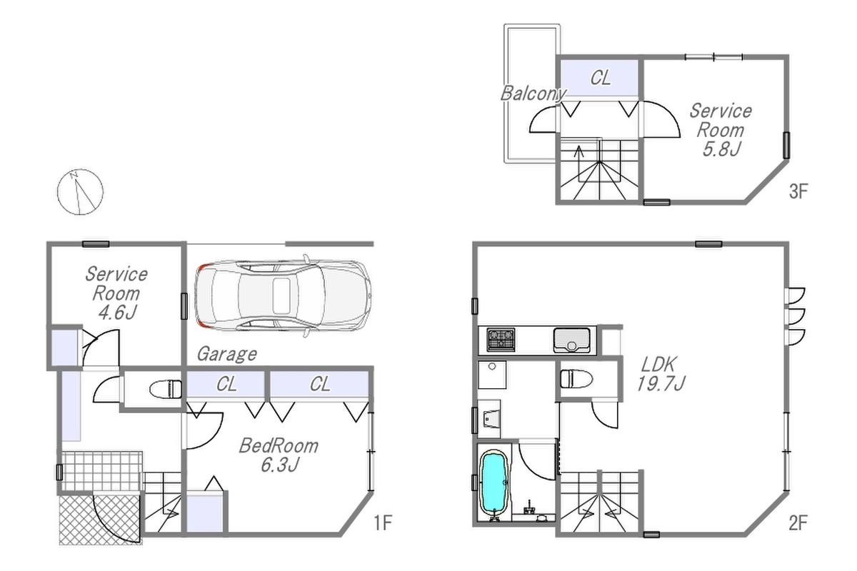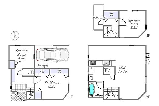| 間取り | 1LDK+2S | 建物構造 | 木造3階建 |