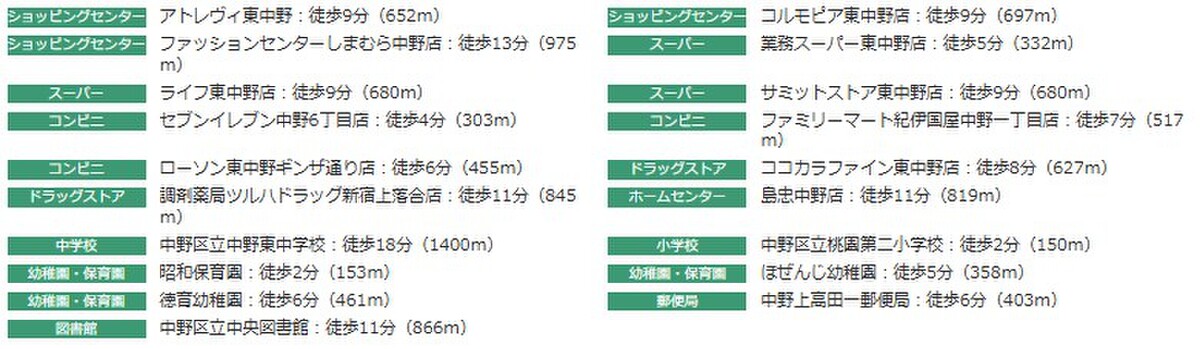 - JR中央線「東中野」駅 徒歩8分都営大江戸線「東中野」駅 徒歩8分JR中央本線「中野」駅 徒歩16分