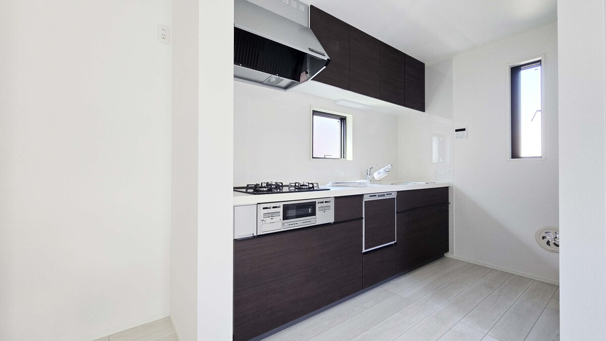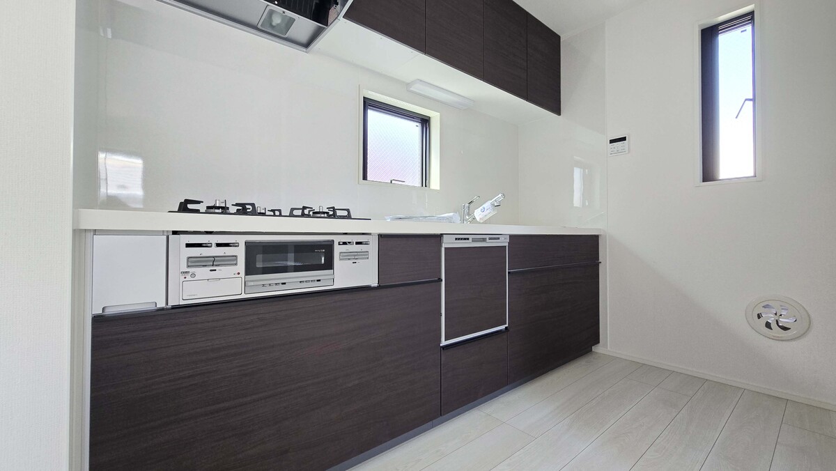 お手入れらくらくシステムキッチンには食洗機を完備!リビングにはエアコン設置済み!浴室乾燥機やウォシュレット付きトイレ、TVモニター付きインターホンなど設備仕様が充実!