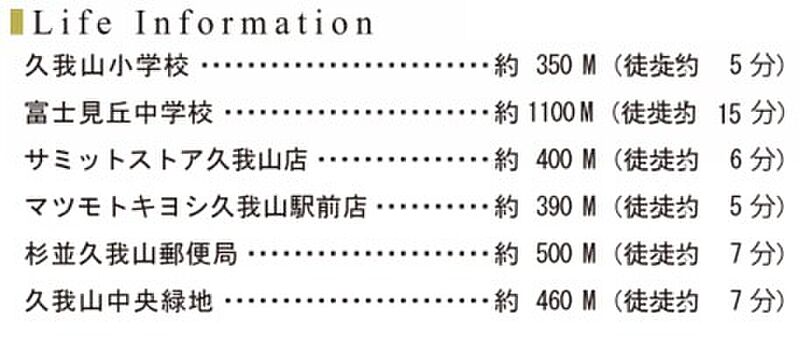 - 京王井の頭線「久我山」駅 徒歩5分京王井の頭線「富士見ヶ丘」駅 徒歩7分京王井の頭線「高井戸」駅 徒歩17分