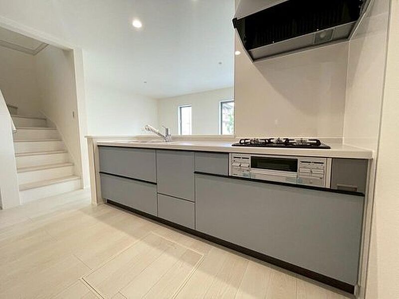 対面式キッチンからダイニングへお食事の受け渡しがスムーズにでき効率的です。お料理中もリビングが見渡せ安心♪会話がはずむ姿が想像できますね♪