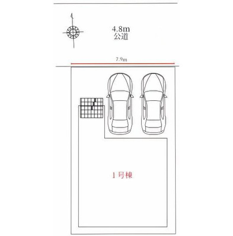 | 駐車場 | 2台 | 道路の幅員 | 道路幅:4.8m、アスファルト舗装、北側 約4.8m 公道接道 |