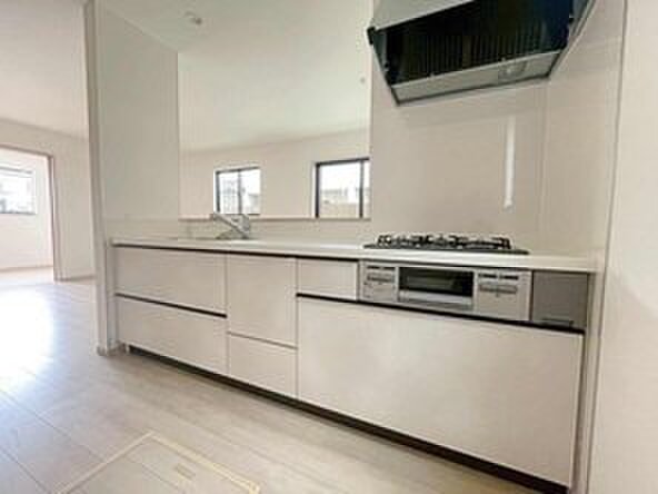 大型スライド収納付きで、すっきり片付けやすいキッチンです。
