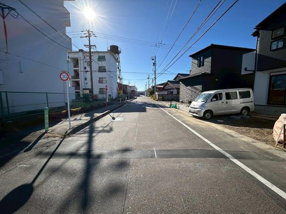 | 駐車場 | 2台 | 道路の幅員 | 道路幅:8.4m・9.7m、アスファルト舗装、南側 約8.42m 東側 約9.72m 公道接道 |