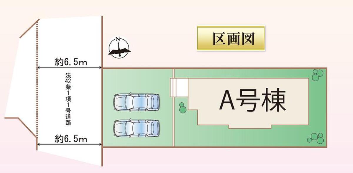 | 駐車場 | 2台 | 道路の幅員 | 道路幅:6.5m、アスファルト舗装、西側 約6.5m 公道接道 |