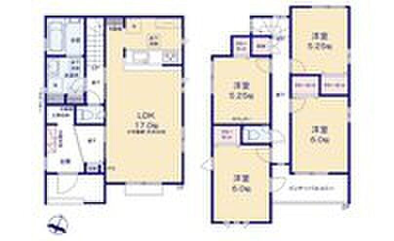 | 建物面積 | 104.79m2・107.24m2(31.69坪・32.43坪) | 土地面積 | 119.23m2・119.24m2(36.06坪・36.06坪) |