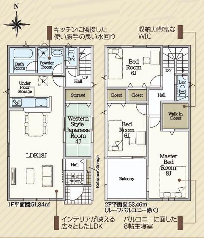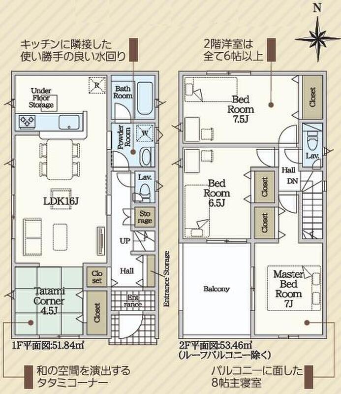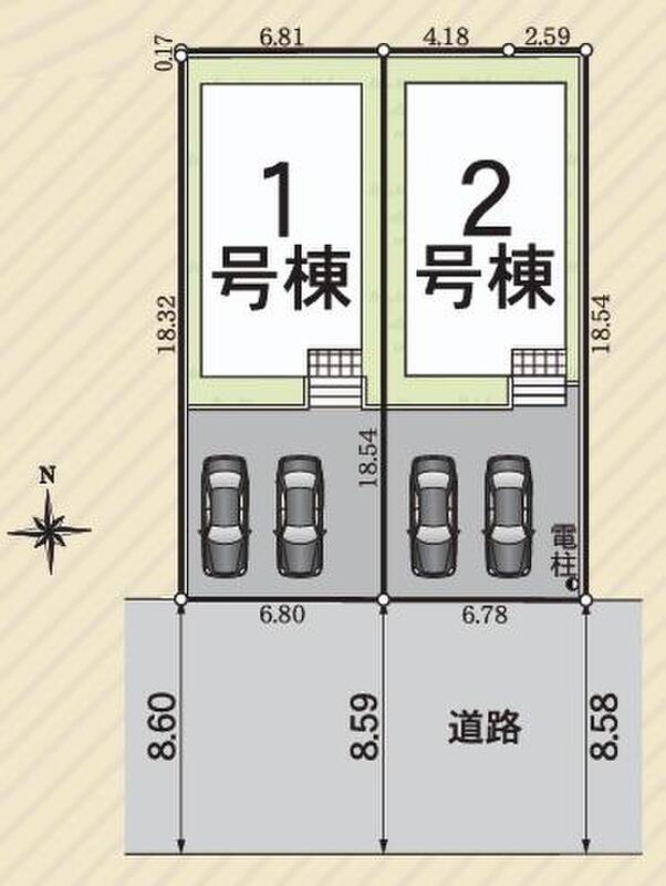 | 建物面積 | 105.3m2(31.85坪) | 土地面積 | 125.79m2・126.08m2(38.05坪・38.13坪) |